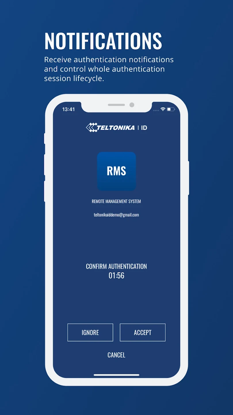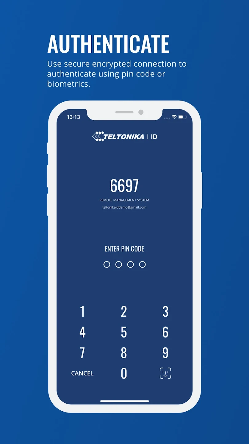 Diseñada como una plataforma de autenticación centralizada, Teltonika ID combina la biometría a nivel de dispositivo, incluyendo Face ID en iOS y la verificación biométrica o PIN en Android , con una autenticación segura de dos factores. Este enfoque permite garantizar la identidad y vincular los dispositivos a los sistemas Teltonika compatibles con Teltonika ID.