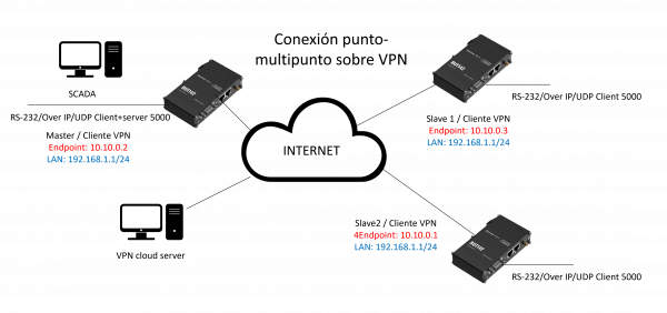 En este artículos vamos a explicar como realizar esta topología gracias al encapsulado serie en UDP del router RU142 junto con sus capacidades de actuar como terminador de VPN para la conexión con emplazamientos remotos a través de Internet.