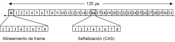 • PCM30/30C: alineamiento de trama y el TS16 se usa sólo para señalización (CAS: channel associated signalling)