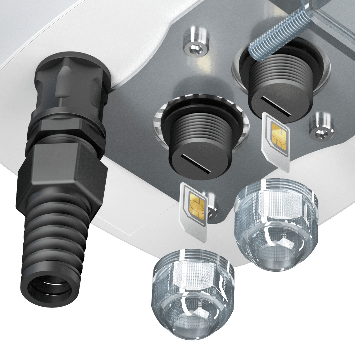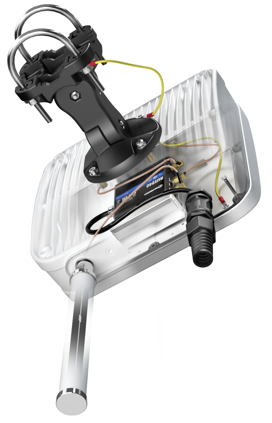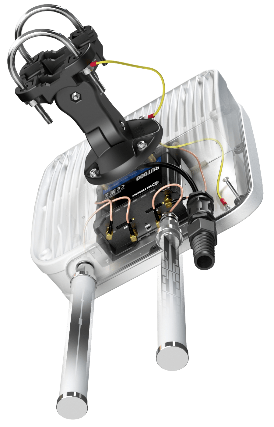 Las antenas QuSpot y QuMax se pueden solicitar con el router Teltonika integrado. En este caso también se incluyen: 1 o 2 SIM card holders (en función del tipo de router) para poder insertar y extraer las SIM desde el exterior sin necesidad de abrir la envolvente de la antena y un inyector PoE pasivo de 24Vdc para poder alimentar el router a través del propio cable Ethernet.